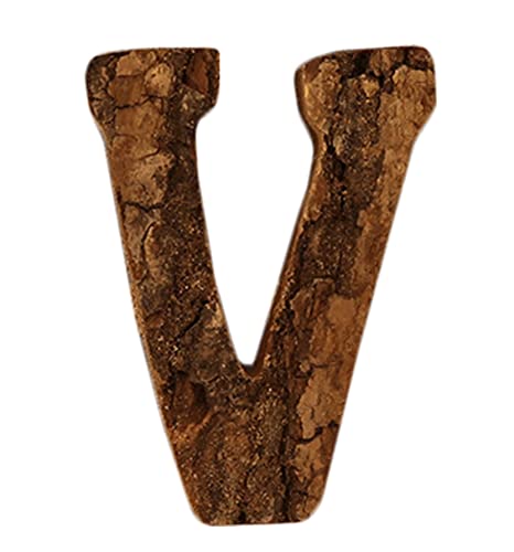 Anawakia Lettres en bois A B C D E F G H I J K L M N O P Q R S T U V W X Y Z Vintage Écorce de bois massif chiffres & 0 1 2 3 4 5 6 7 8 9 Retro DIY Décoration (V)