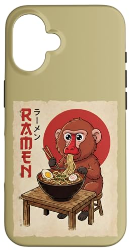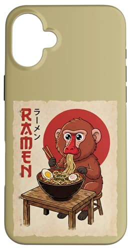 Baboon Eating Japanese Ramen Nouilles Chat Graphique Coque pour iPhone 16 Plus
