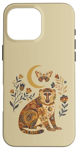 Boho Céleste Baboon Lune Floral Coque pour iPhone 16 Pro Max