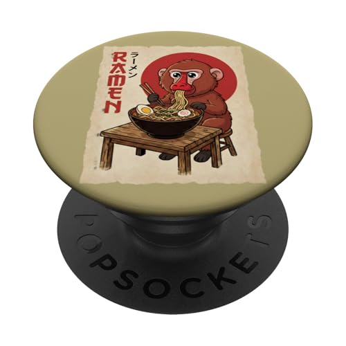 Baboon Eating Japanese Ramen Nouilles Chat Graphique PopSockets PopGrip Adhésif