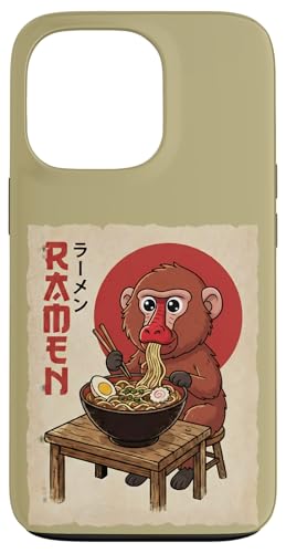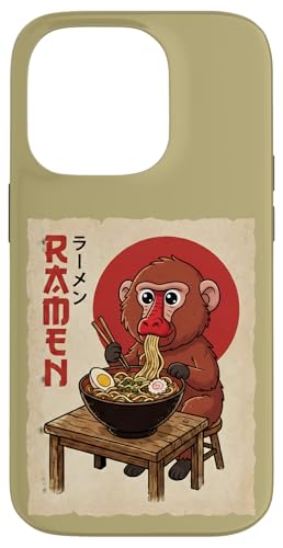 Baboon Eating Japanese Ramen Nouilles Chat Graphique Coque pour iPhone 13 Pro