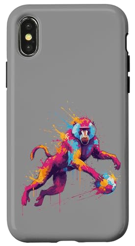 Joueur de Football Baboon Art éclaboussures de Peinture Coque pour iPhone XS Max