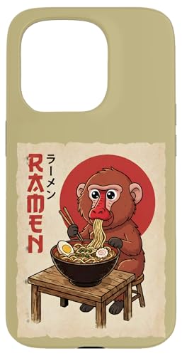 Baboon Eating Japanese Ramen Nouilles Chat Graphique Coque pour iPhone 15 Pro