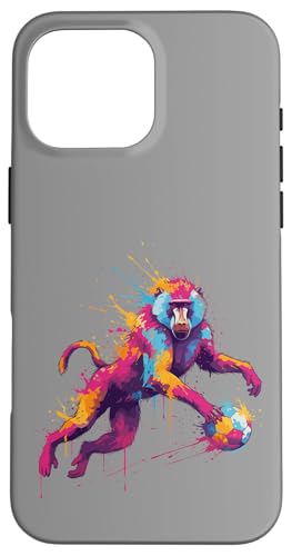 Joueur de Football Baboon Art éclaboussures de Peinture Coque pour iPhone 16 Pro Max