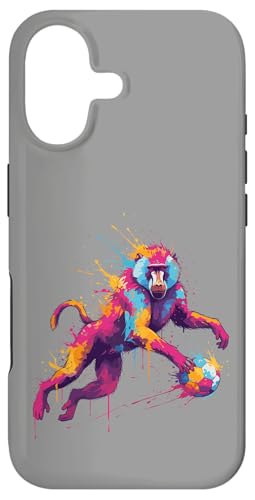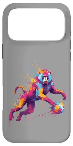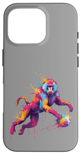 Joueur de Football Baboon Art éclaboussures de Peinture Coque pour iPhone 16 Pro