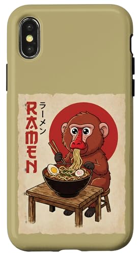 Baboon Eating Japanese Ramen Nouilles Chat Graphique Coque pour iPhone X/XS