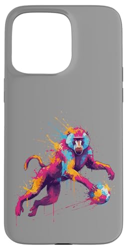 Joueur de Football Baboon Art éclaboussures de Peinture Coque pour iPhone 15 Pro Max