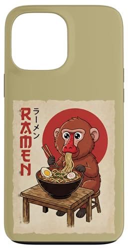 Baboon Eating Japanese Ramen Nouilles Chat Graphique Coque pour iPhone 13 Pro Max