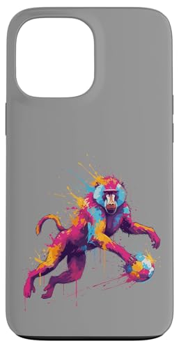 Joueur de Football Baboon Art éclaboussures de Peinture Coque pour iPhone 13 Pro Max