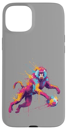 Joueur de Football Baboon Art éclaboussures de Peinture Coque pour iPhone 15 Plus