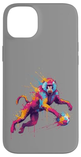 Joueur de Football Baboon Art éclaboussures de Peinture Coque pour iPhone 14 Plus