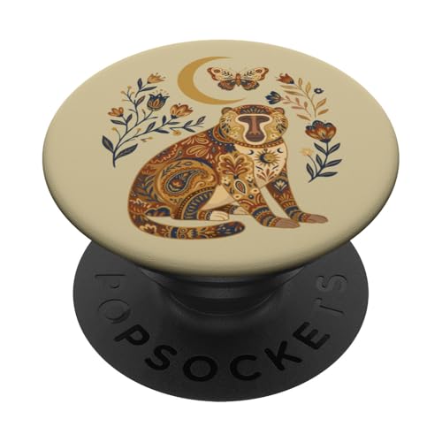 Boho Céleste Baboon Lune Floral PopSockets PopGrip pour MagSafe