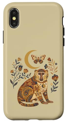 Boho Céleste Baboon Lune Floral Coque pour iPhone XS Max