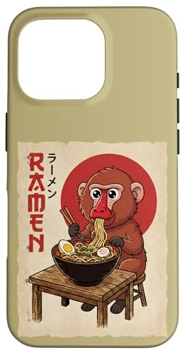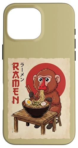 Baboon Eating Japanese Ramen Nouilles Chat Graphique Coque pour iPhone 16 Pro Max