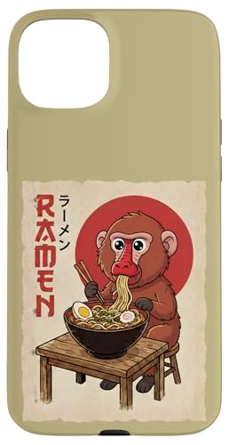Baboon Eating Japanese Ramen Nouilles Chat Graphique Coque pour iPhone 15