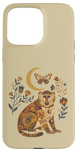 Boho Céleste Baboon Lune Floral Coque pour iPhone 15 Pro Max