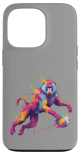 Joueur de Football Baboon Art éclaboussures de Peinture Coque pour iPhone 13 Pro