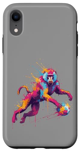Joueur de Football Baboon Art éclaboussures de Peinture Coque pour iPhone XR