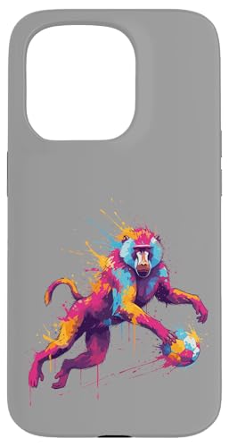 Joueur de Football Baboon Art éclaboussures de Peinture Coque pour iPhone 15 Pro