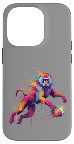 Joueur de Football Baboon Art éclaboussures de Peinture Coque pour iPhone 14 Pro