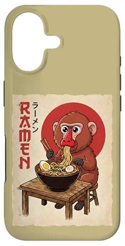 Baboon Eating Japanese Ramen Nouilles Chat Graphique Coque pour iPhone 16
