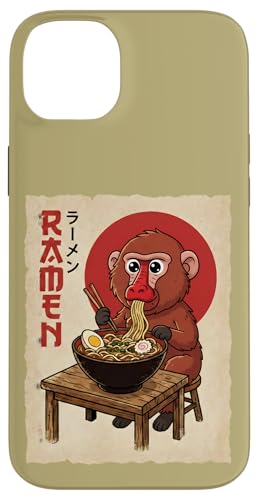 Baboon Eating Japanese Ramen Nouilles Chat Graphique Coque pour iPhone 15 Plus