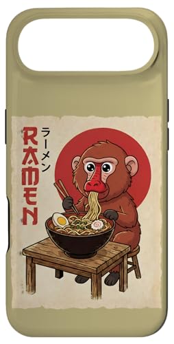 Baboon Eating Japanese Ramen Nouilles Chat Graphique Coque pour iPhone 17 Pro Max