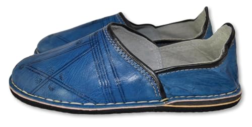 Babouche berbère artisanale en Cuir pour homme et femme Bout rond couleur noir marron bleu interieur exterieur Fait au maroc (Bleu, Système Taille Chaussures EU, Adulte, Numérique, Moyen, 39)