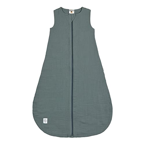 LÄSSIG Sac de couchage d'été pour bébé sans manches Coton mousseline certifié GOTS/Muslin Baby Sleeping Bag GOTS petrol green, 62/68