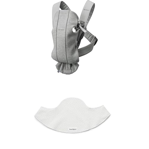Bundle of BabyBjörn Porte-bébé Mini, Jersey 3D, Gris clair + Bavoir pour Porte-bébé, Blanc