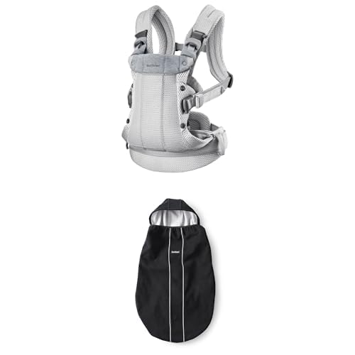 Bundle of BabyBjörn Porte-bébé Harmony, Mesh 3D, Argent + Cape pour Porte-bébé, Noir