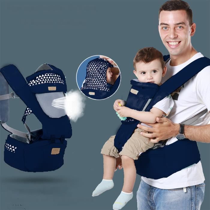 Front Premium Hipseat Porte-bébé Baby CarrierMultifonctionnel Ergonomique100% Coton Boucle Rotative à Papillon(Bleu)