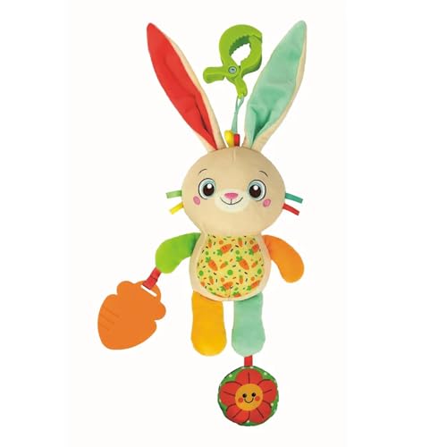 Clementoni Baby – Easy-Peasy Soft Bunny – Peluche de Voyage pour Enfants 0+ Mois, Hochet bruissant avec Pendentif croquant, Pince pour Poussette et Voiture, Lavable en Machine, 17622