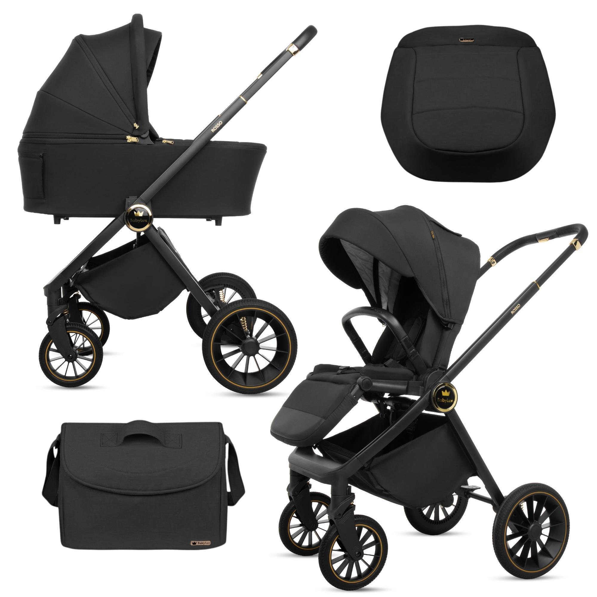 BabyLux® Poussette 4en1 Set Rosso, Noir, Pliable Léger Set De Poussettes Combinées Baignoire Pour Bébé, Buggy , Siège Auto, Base et Plus D'accessoire