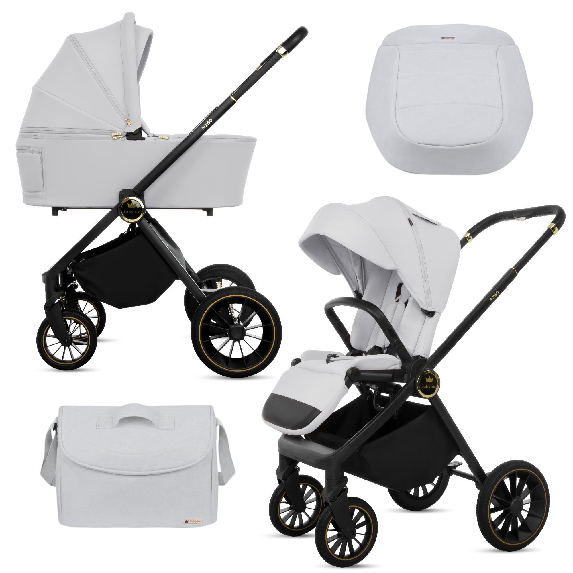 BabyLux® Poussette 2en1 Rosso, Argent, Pliable Set De Poussettes Combinées Légères Avec Nacelle, Siège Sport Buggy, Sac À Langer Et Autres Accessoires
