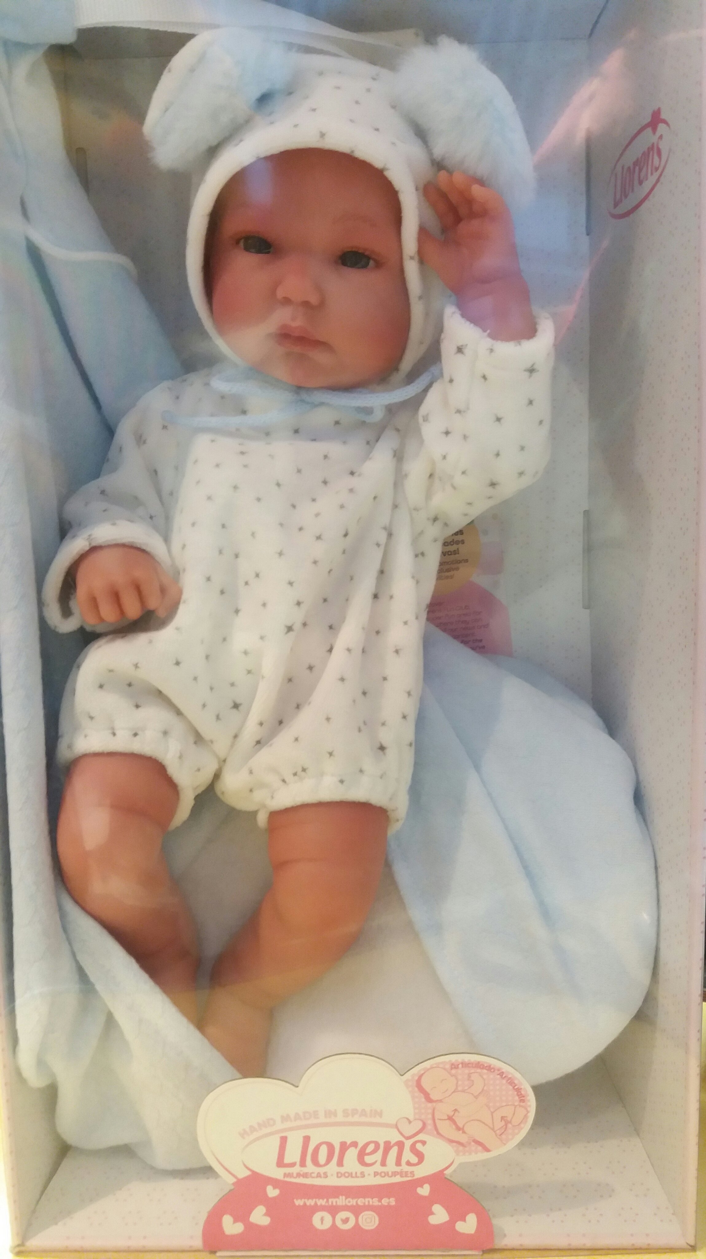 Llorens New Born baby boy in textile swing 35 cm