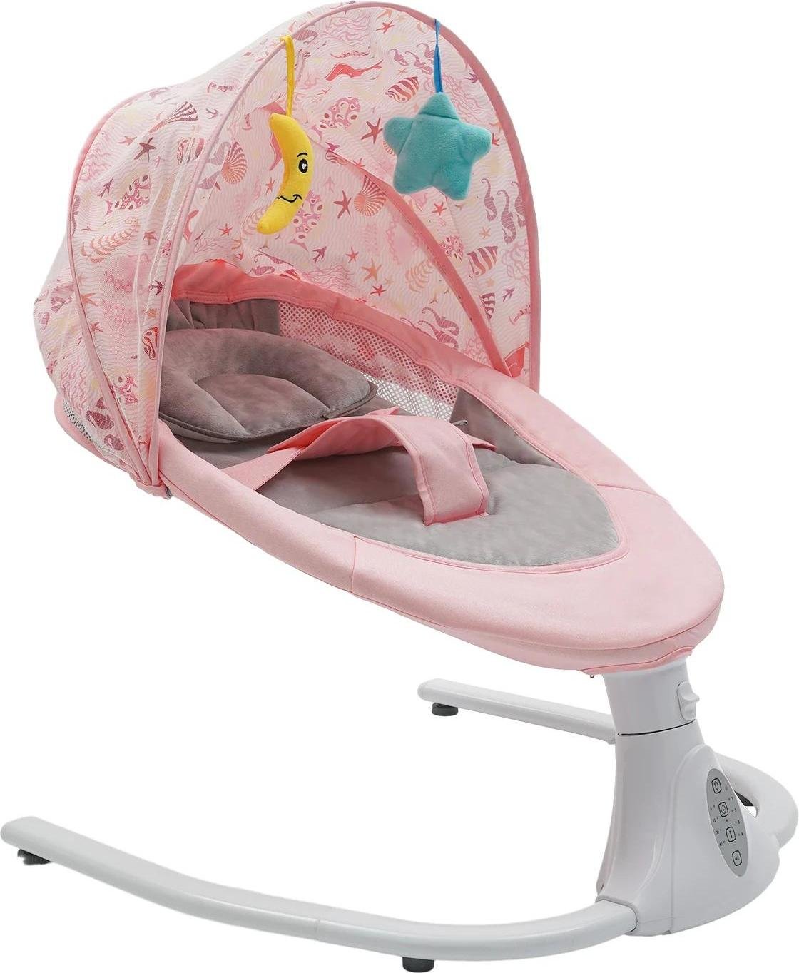 Baby Swing - Balançoire électrique pour bébé - Télécommande et musique Bluetooth - Moustiquaire - Minuterie 8/15/30/60 min - 0-18 mois - Jusqu'à 20 kg - Rose pink