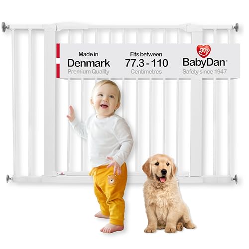 BabyDan Swing Shut Barrière de Sécurité pour Bébé et Animaux, Monté sur Pression, 77,3-110 cm, Blanc, Fabriqué au Danemark