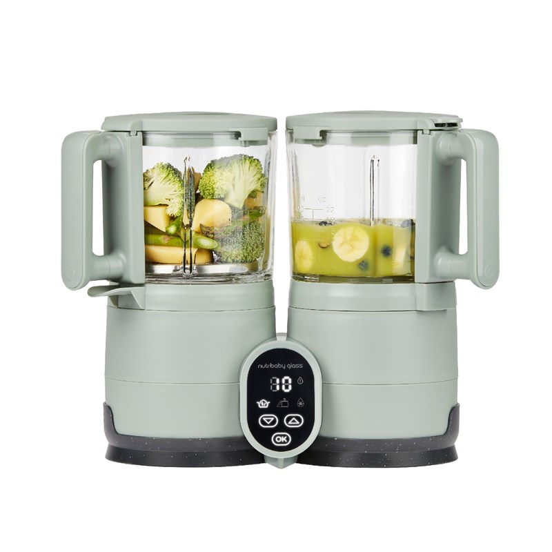 Babymoov Robot Cuiseur Bébé Nutribaby Glass - Bols en Verre - 4 en 1 Mixeur Cuiseur Vapeur, Grande Contenance 1,9L, Cuisson Saine des Aliments, Vert Celadon