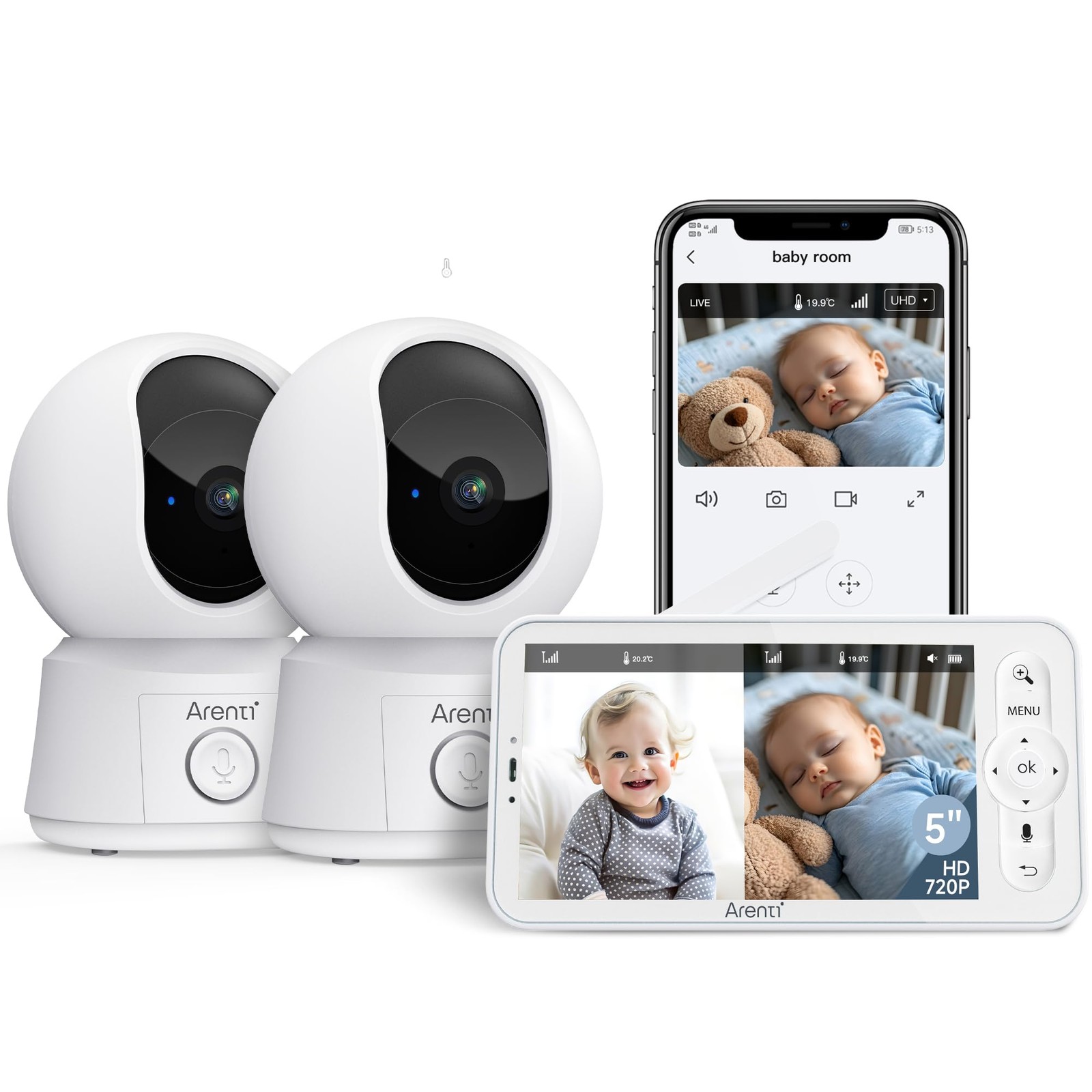 ARENTI Babyphone 2 Caméra Bébé Baby Phone Vidéo Connecté Smartphone 1080P Baby Moniteur Vidéo avec VOX
