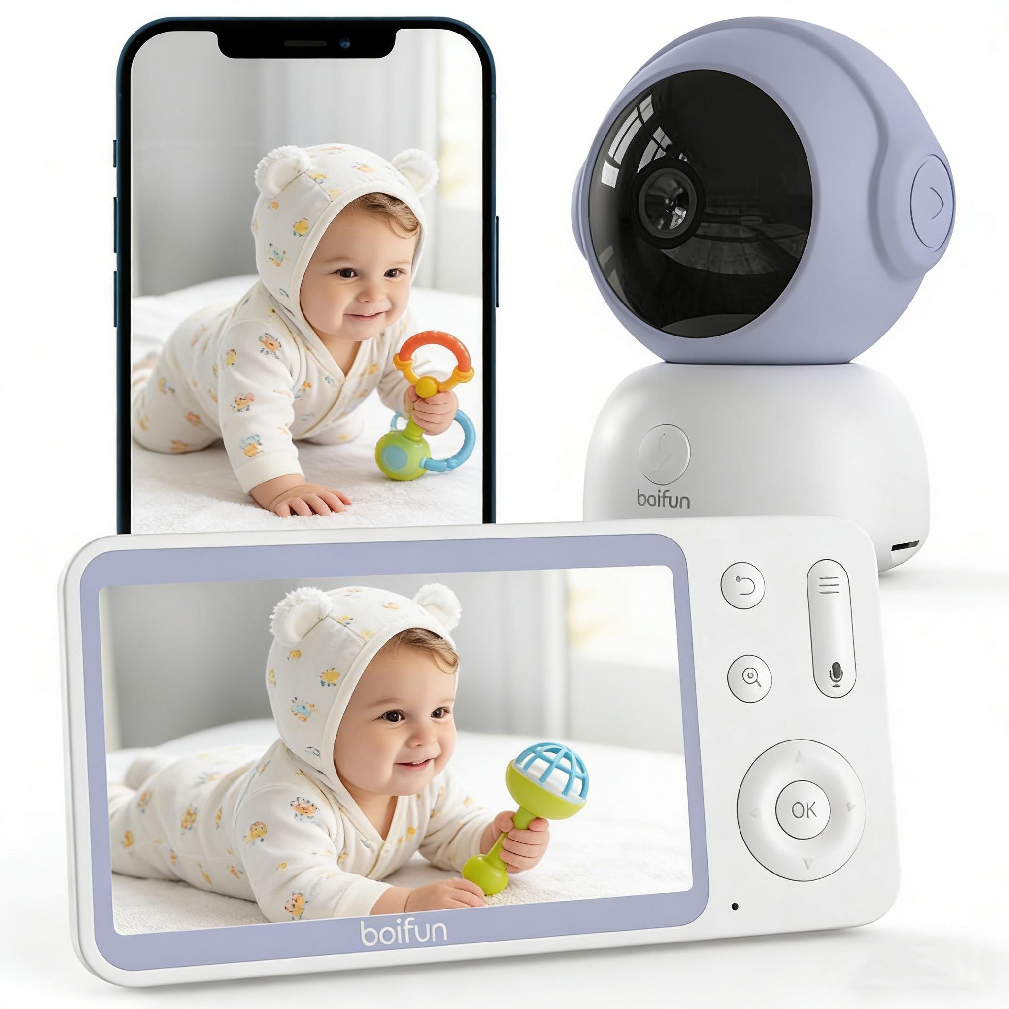 5 2K Babyphone CaméraWiFi&Mode LocalVision Nocturne Sans LumièreDétection Pleurs/Mouvements/Température/HumiditéSuivi Auto 360°