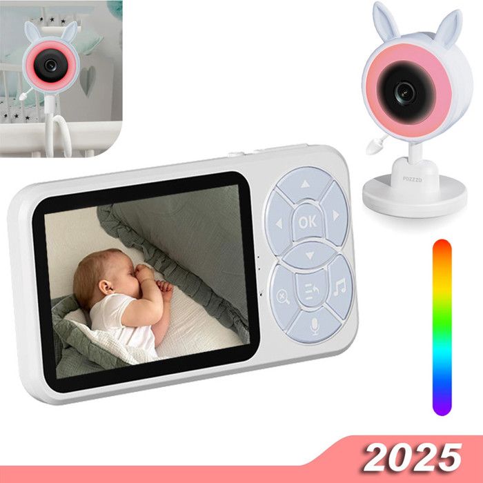 Babyphone Caméra avec Écran 35 - Communication Bidirectionnelle Vision Nocturne Zoom 4X Détection Température Veilleuse RGB