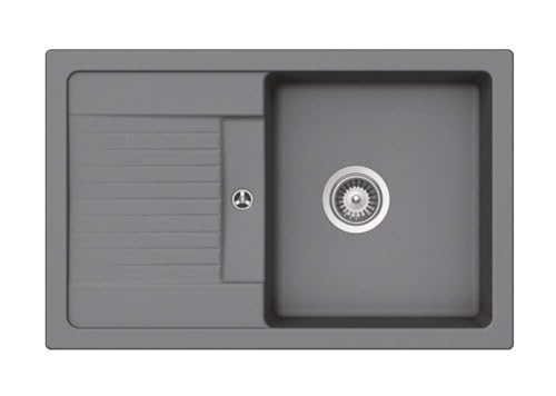 SCHOCK Lima D-100S Croma Évier de cuisine, en granit, gris clair, avec bac simple et égouttoir, encastrable à partir de 50 cm, pour meuble bas à partir de 50 cm, robuste et facile d'entretien
