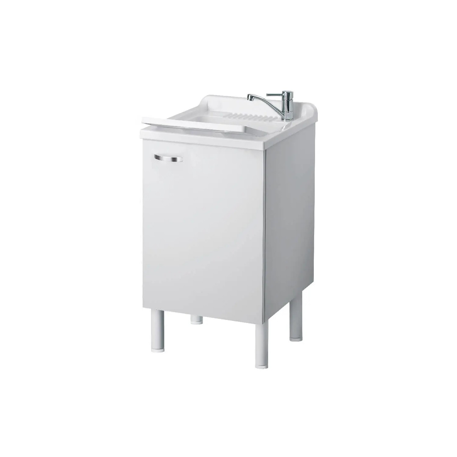 BAC À LAVER AVEC MEUBLE CACHE LAVE LINGE EN PVC BLANC 109X60 CM MOD. SILVESTRO