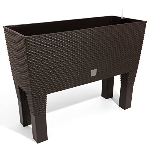 PROSPERPLAST Jardinière surélevée ocre foncé en polyrotin 3 compartiments 60x25x46 cm Bac à fleurs sur pieds 30 L