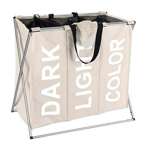 Nicesail Panier pour le tri du linge à laver à 3 compartiments imprimés, avec cadre en aluminium et paniers en Oxford imperméable, pliable, avec inscription « Dark/Light/Color »