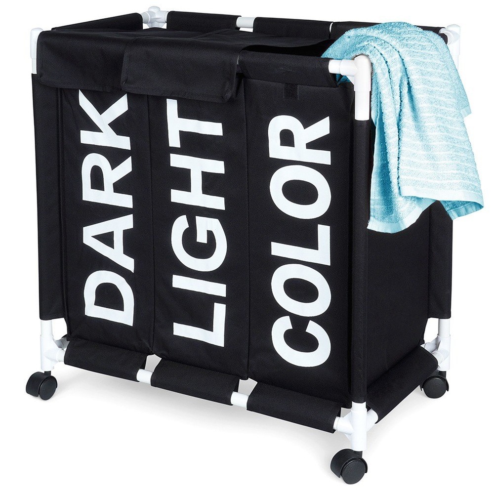 Panier à Linge 105L 3 Compartiments Bac Collecteur Tri Linge Sale Maison