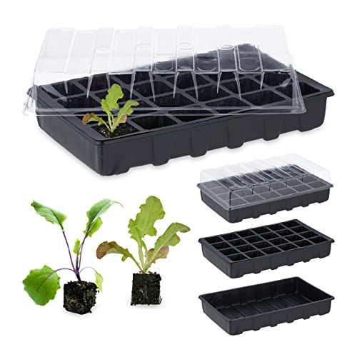 Relaxdays Bac à semis, lot 3, miniserre pour Le Rebord de la fenêtre, 24 Compartiments chacun, Couvercle, Noir