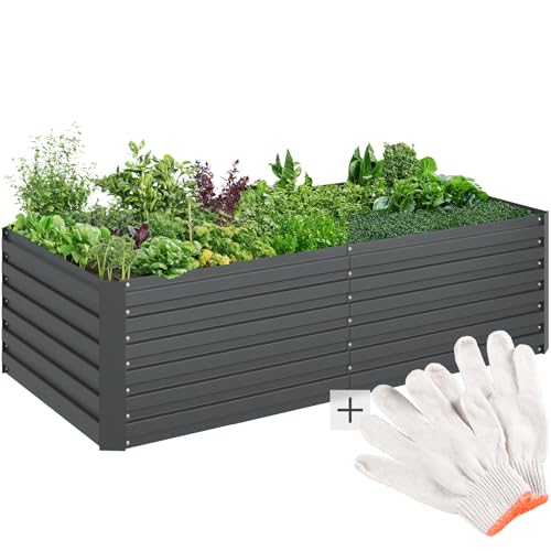 TecTake® Lit de Jardin Carré Potager de Jardin surélevé, Bac à semis Jardiniere en Acier galvanisé résistant à la Rouille Serre Jardiniere Exterieur Grande Taille 200x100x80 cm