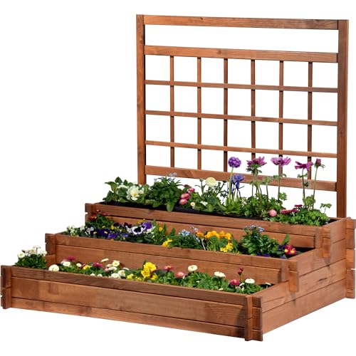 dobar Plate-Bande surélevée, Trois Niveaux de Pérou en Bois avec Treillis Treillis : Bac à semis Kit pour légumes, Marron, 110 x 88 x 115 cm, 58185 FSC